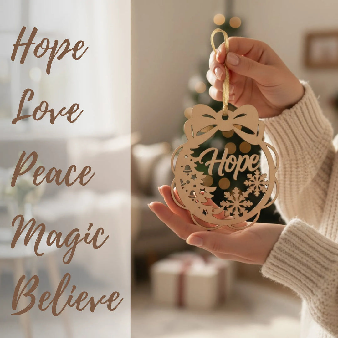 Wooden Christmas Ornament Set (Hope, Love, Peace, Magic, Believe)